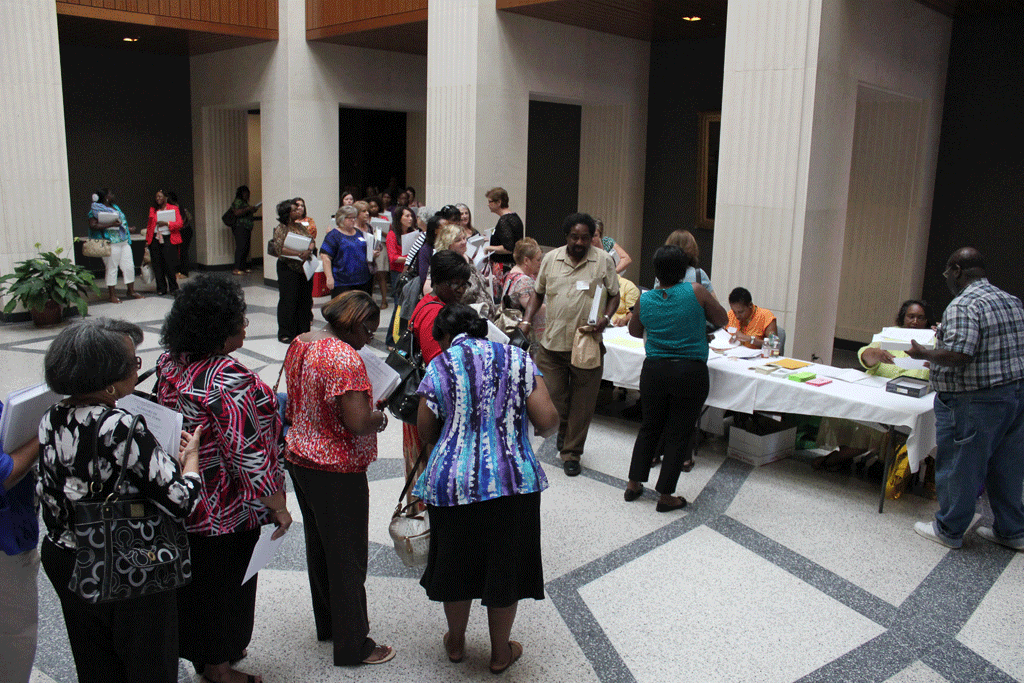 At the end of the day, the conference participants lined up to collect their CLE and SWU certificates